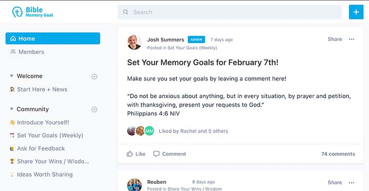 Como puede ver en la captura de pantalla anterior, esta comunidad de memorización de las Escrituras GRATUITA le permitirá: